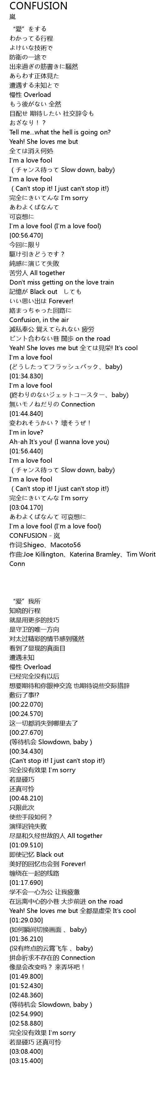 | [03:15.400] | CONFUSION - 岚 |