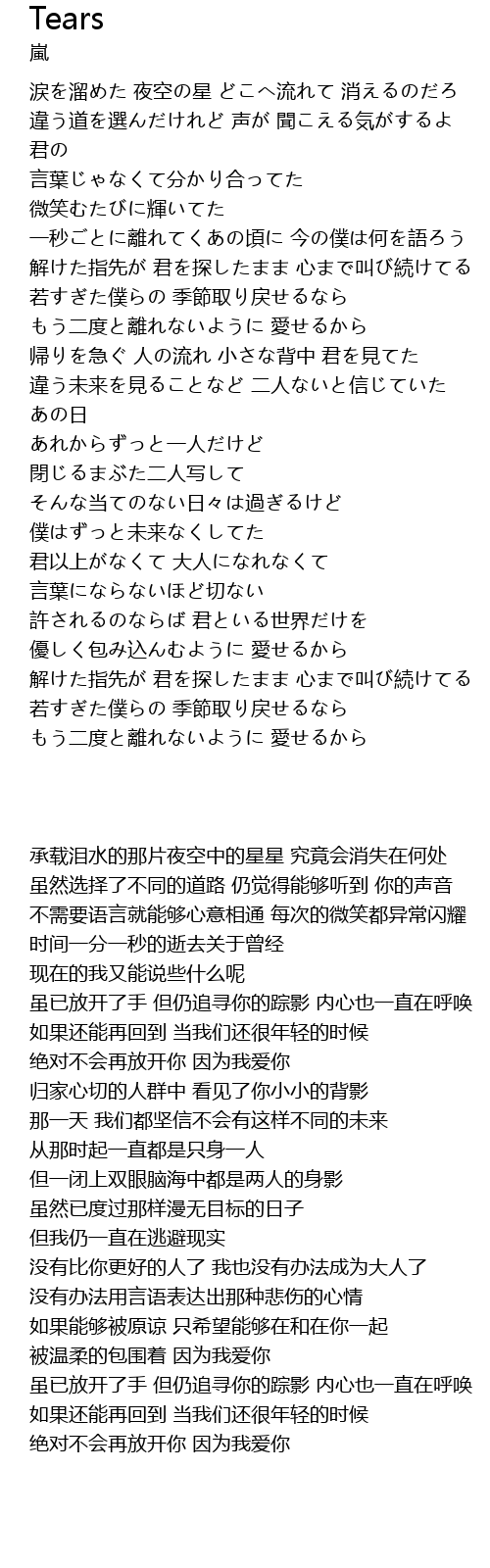 | [00:20.640] | 承载泪水的那片夜空中的星星 究竟会消失在何处 |