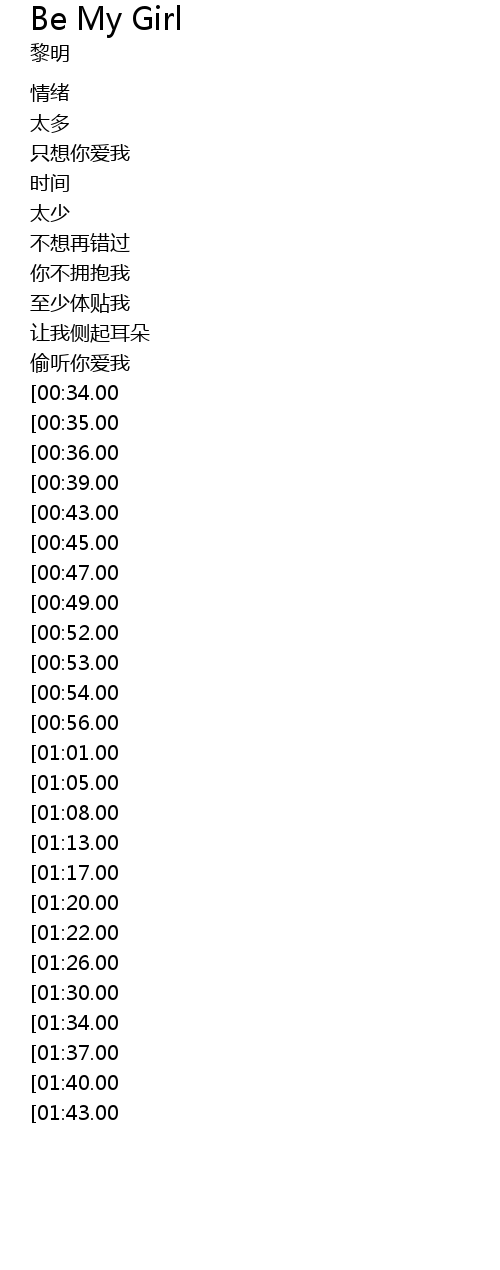 | [02:35.00][01:08.00] | Come on and be my girl |