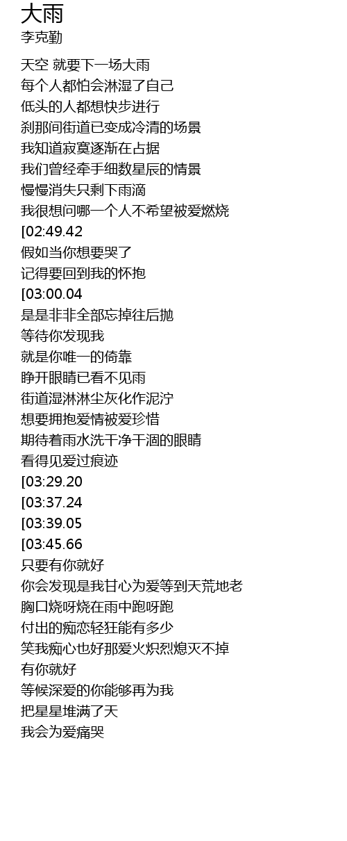 | [00:47.66] | 每个人都怕会淋湿了自己 |