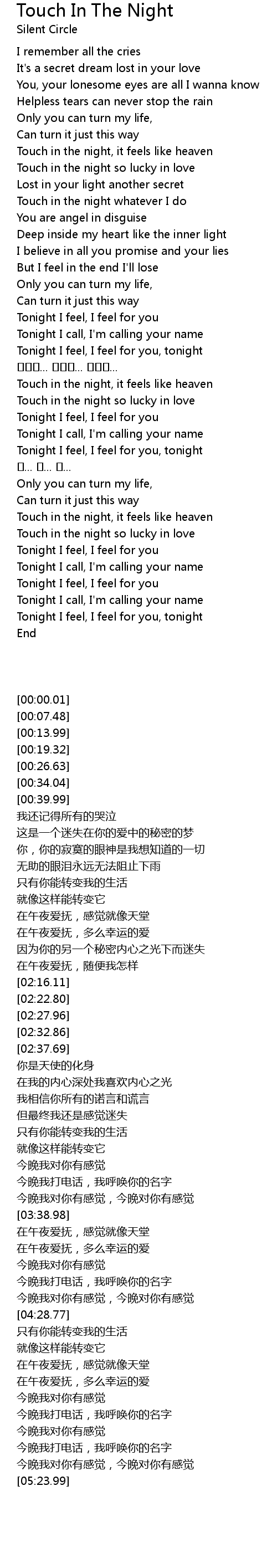 | [04:47.55] | Touch in the night, it feels like heaven |