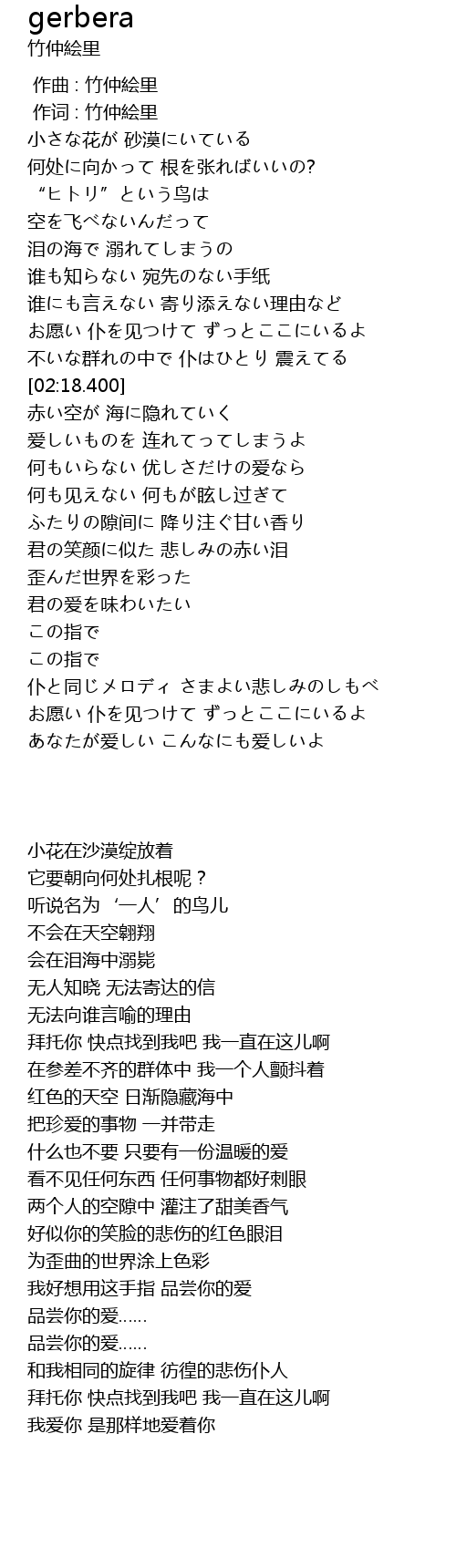 | [00:01.00] | 作词 : 竹仲絵里 |
