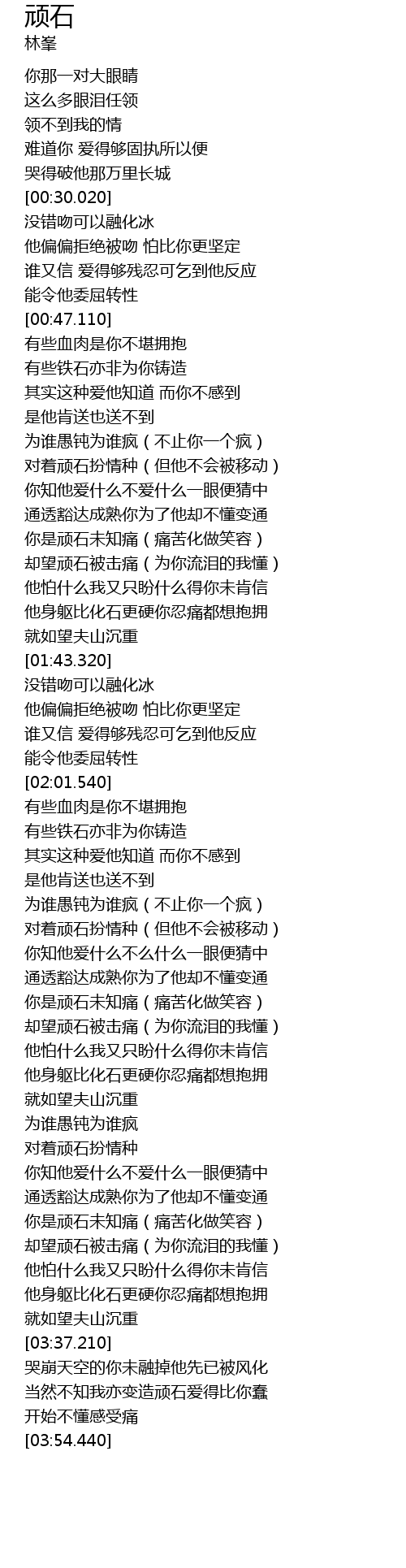 | [03:20.520] | 却望顽石被击痛(为你流泪的我懂) |