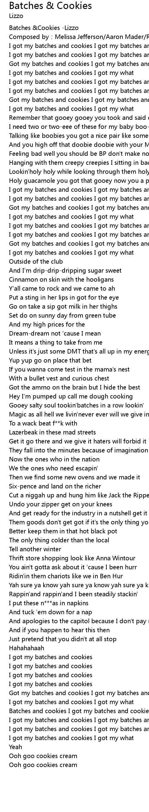 | [02:59.726] | Batches and cookies I got my batches and cookies |