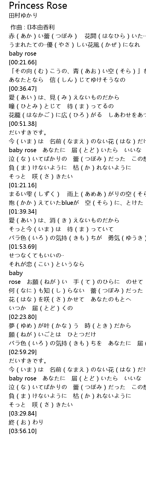 | [03:06.60] | baby rose あなたに 届(とど)いたら いいな |
