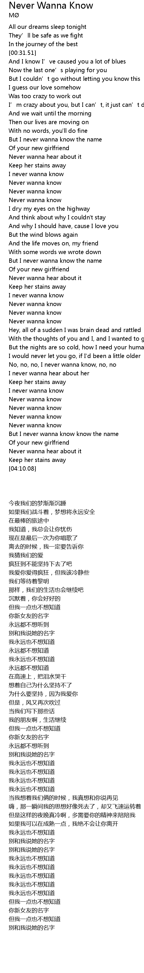 | [03:33.97] | 我永远也不想知道 |