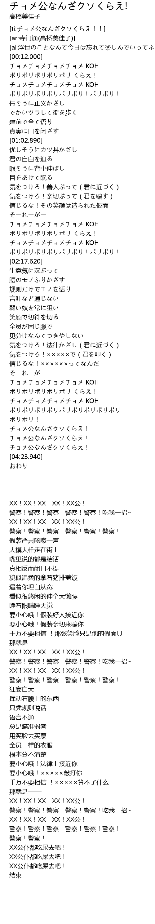 | [01:59.900] | 警察!警察!警察!警察!警察!吃我一招~ |