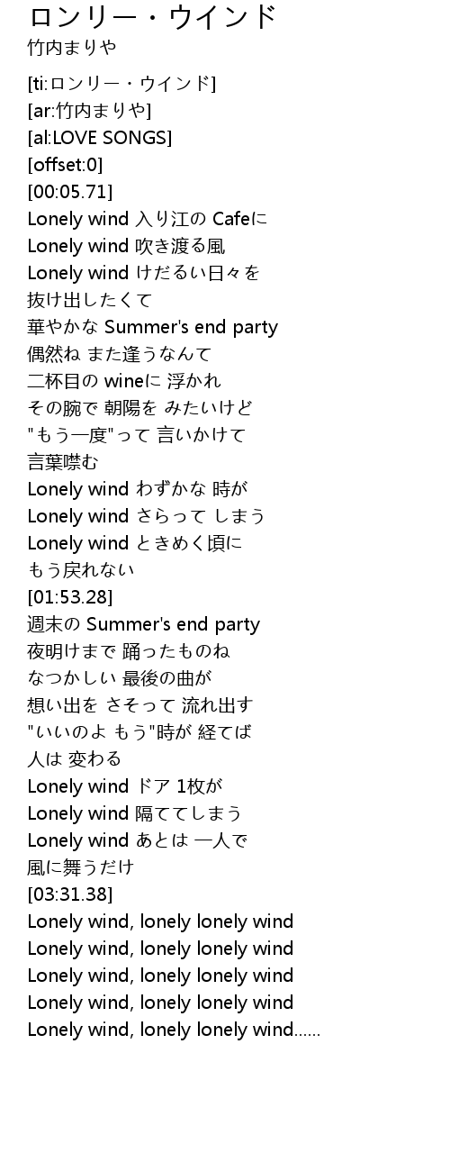 | [03:56.37] | Lonely wind, lonely lonely wind...... |