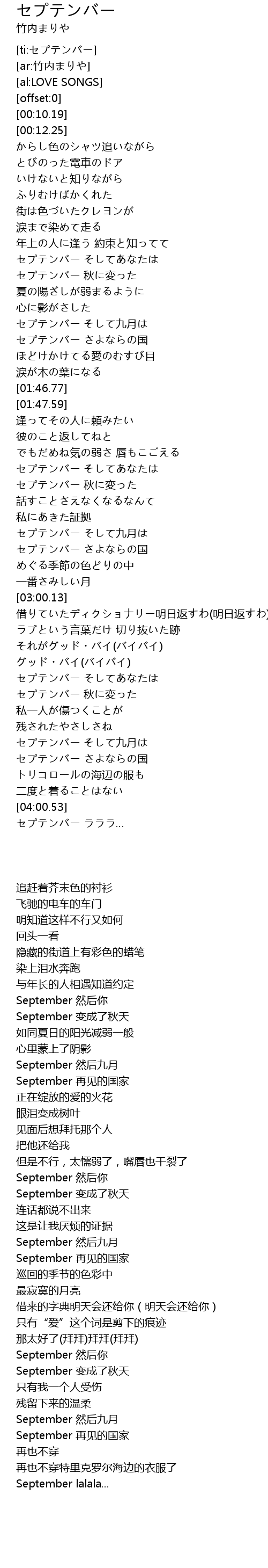 | [03:42.21] | セプテンバー そして九月は |