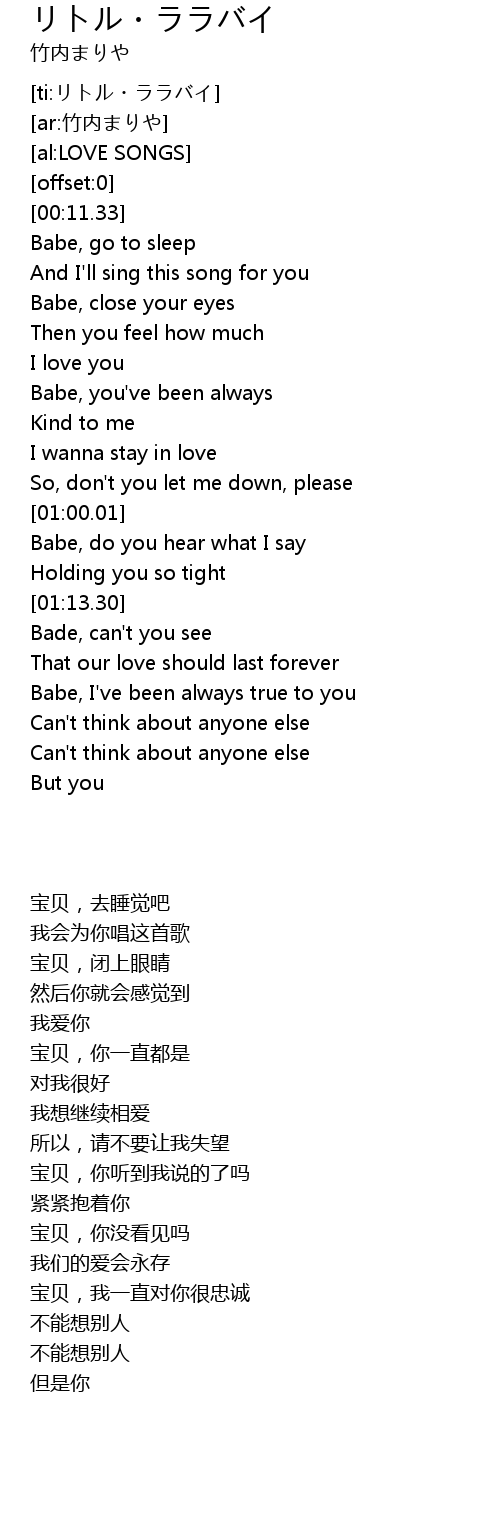 | [00:13.07] | 宝贝,去睡觉吧 |