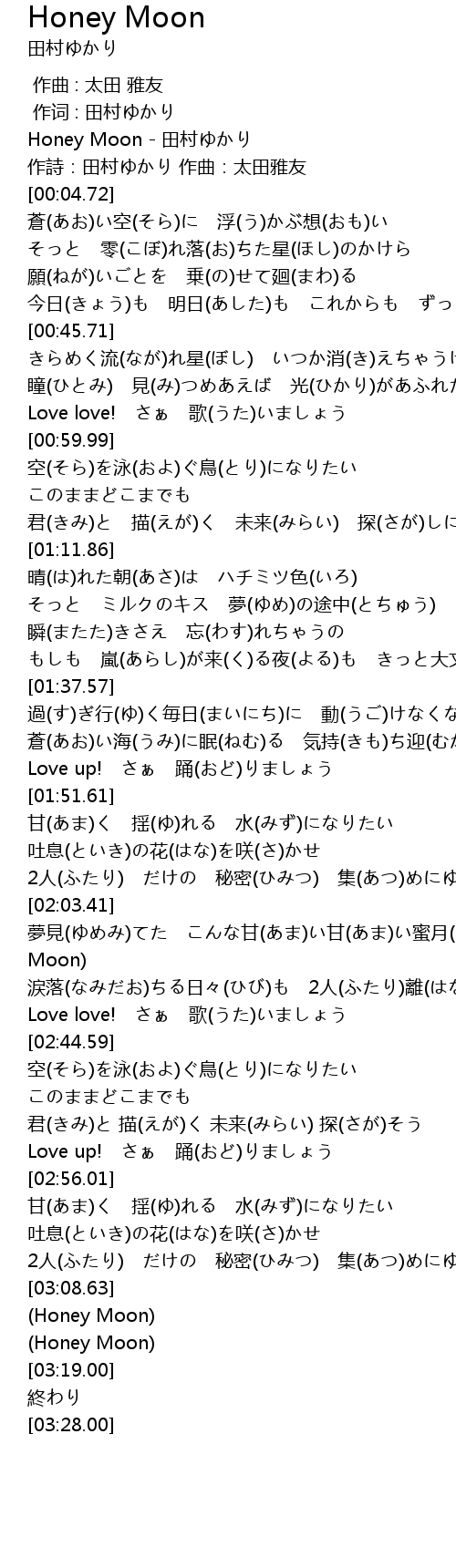 | [00:01.24] | Honey Moon - 田村ゆかり |