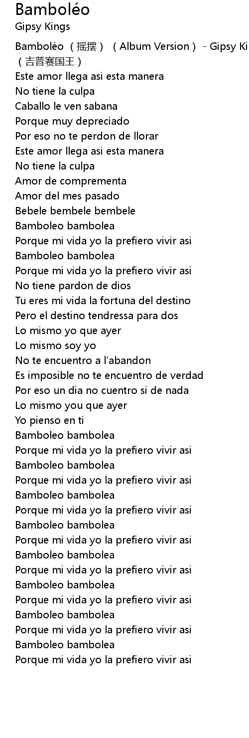 | [00:00.801] | Bambolé o yáo bǎi Album Version Gipsy Kings jí pǔ sài guó wáng |