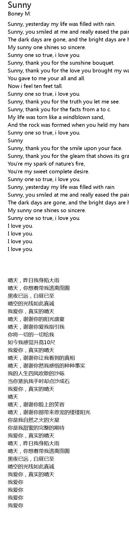 Sunny, yesterday my life was filled with rain. |