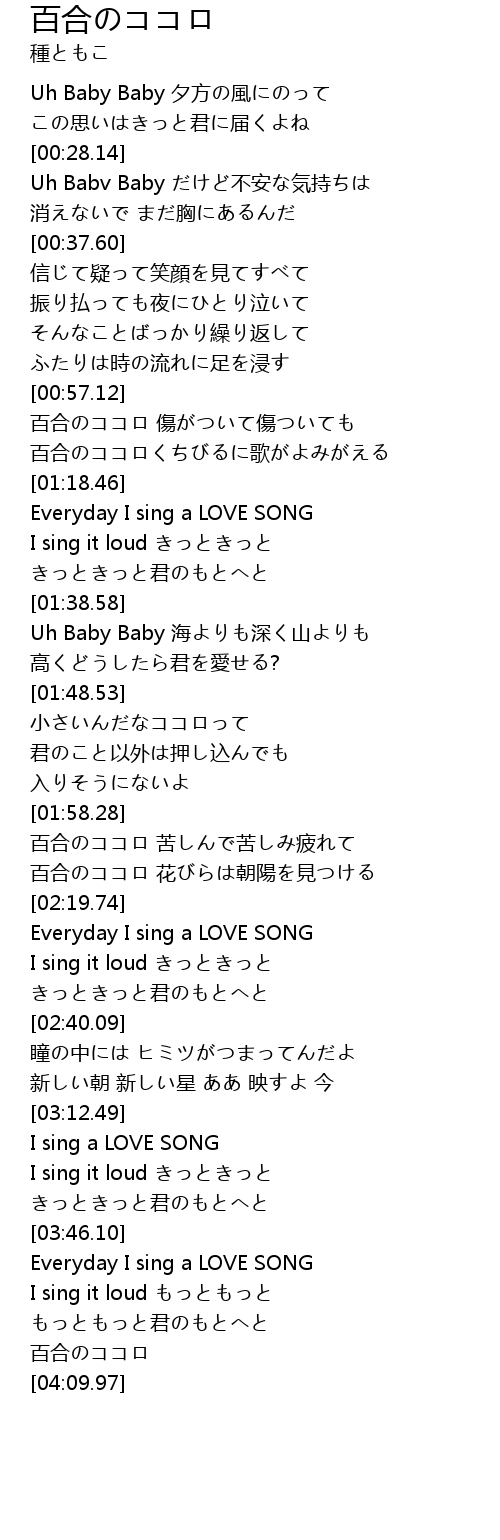 | [01:08.67] | 百合のココロくちびるに歌がよみがえる |