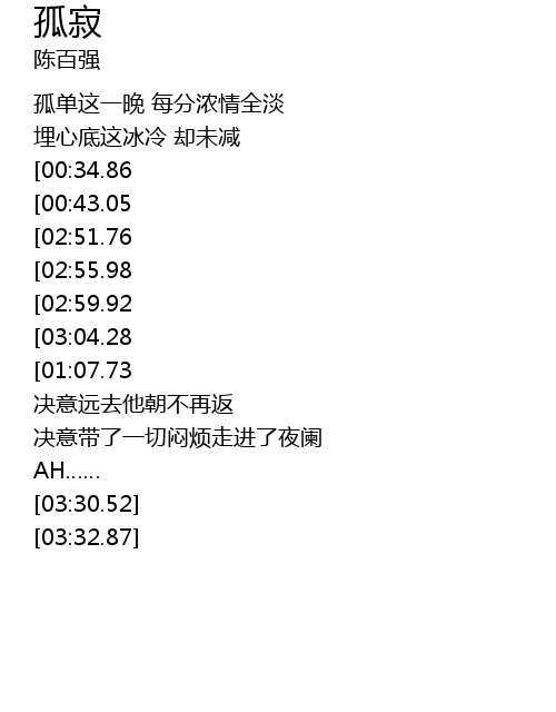 | [03:20.69][03:04.28][01:53.91][01:02.20] | 无尽陌路岁月漫漫 |