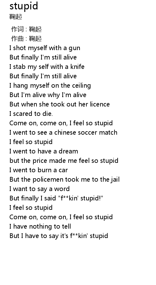| [01:59.42] | But I have to say it' s f kin' stupid |