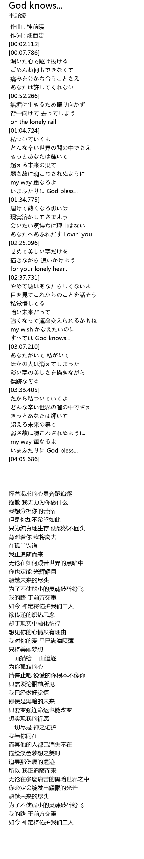 | [03:02.765] | すべては God knows... |
