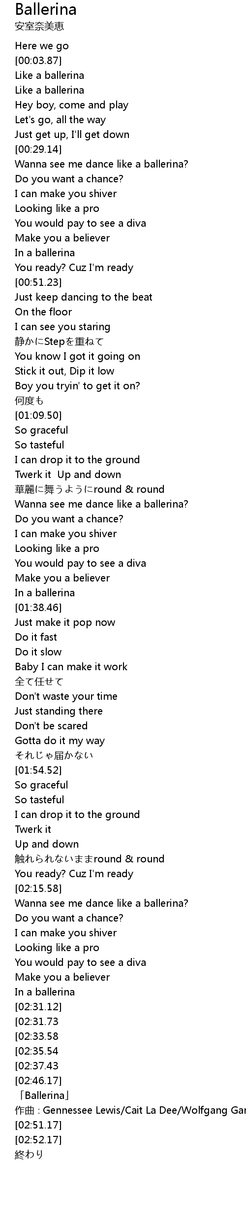 | [02:47.17] | 「Ballerina」 |