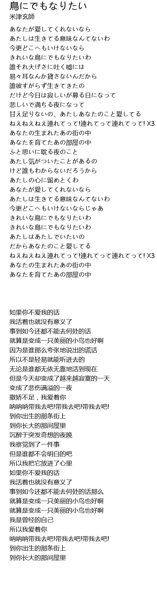 | [01:56.48] | きれいな鳥にでもなりたいわ |
