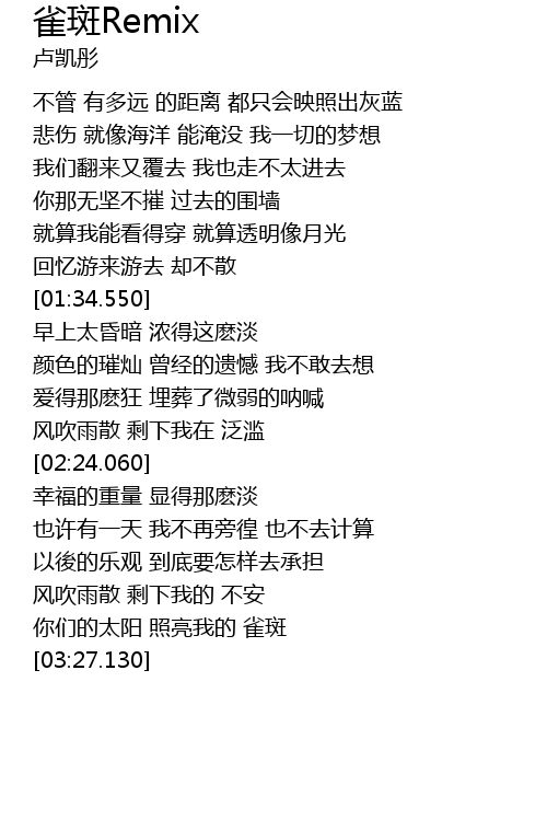 | [03:16.320] | 你们的太阳 照亮我的 雀斑 |