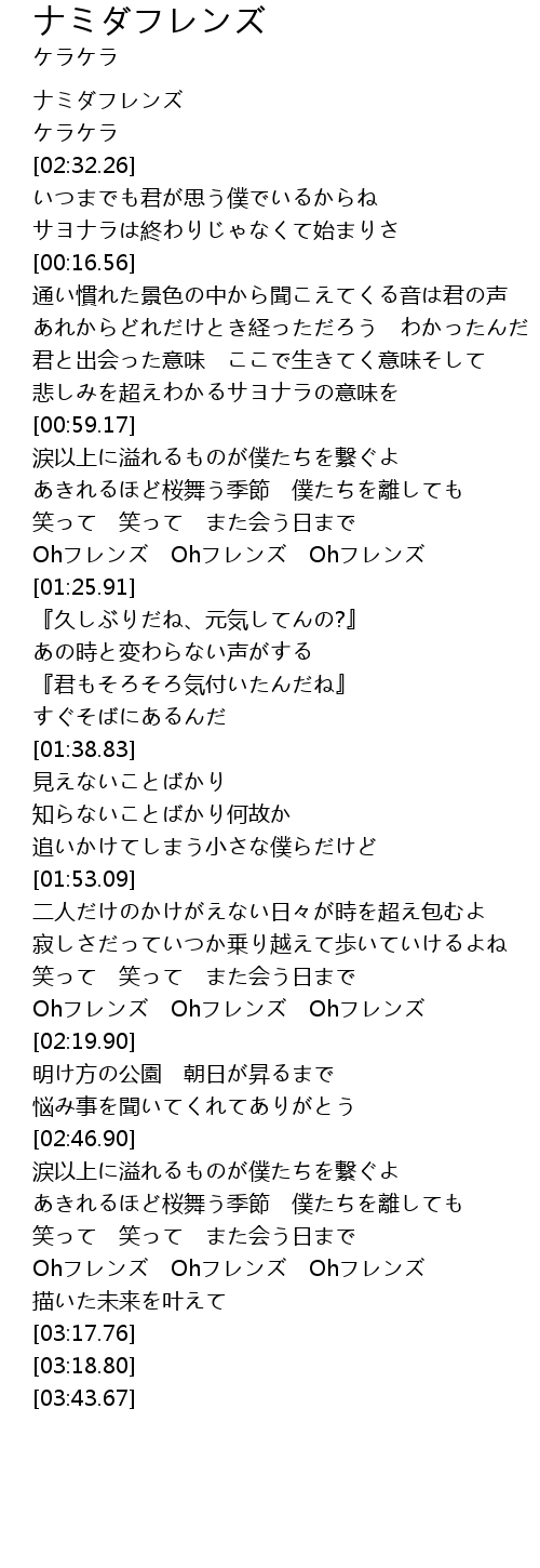 [02:20.73] ナミダフレンズ