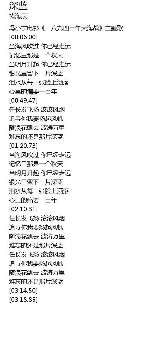 | [03:02.50] | 难忘的还是那片深蓝 |