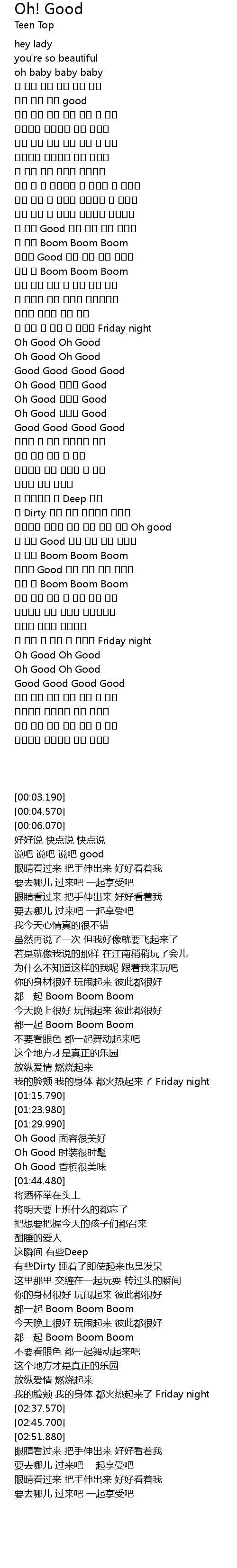 | [01:33.720] | Oh Good 얼굴이 Good |