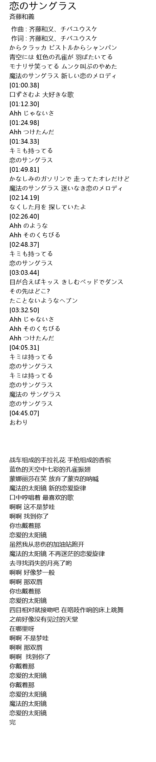 | [00:49.85] | 魔法的太阳镜 新的恋爱旋律 |