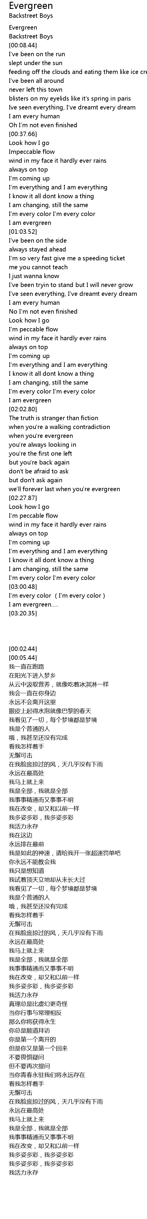| [02:00.59] | I am evergreen |