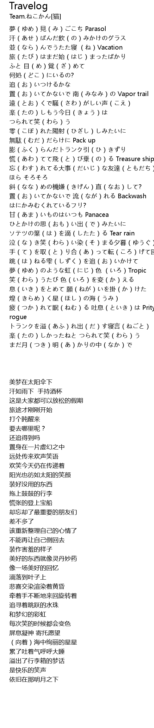 | [00:31.71] | 並(なら)んでうたた寝 (ね)Vacation |