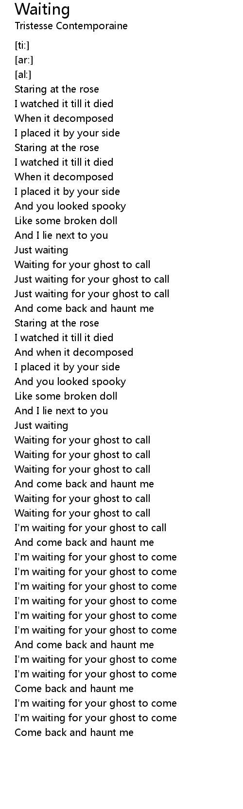 I'm waiting for your ghost to come |