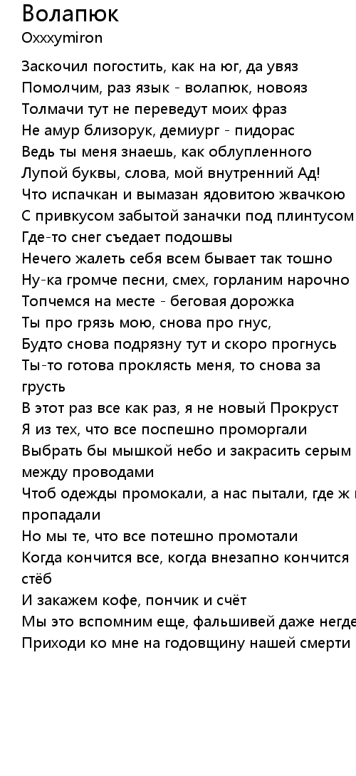 Волапюк 歌词