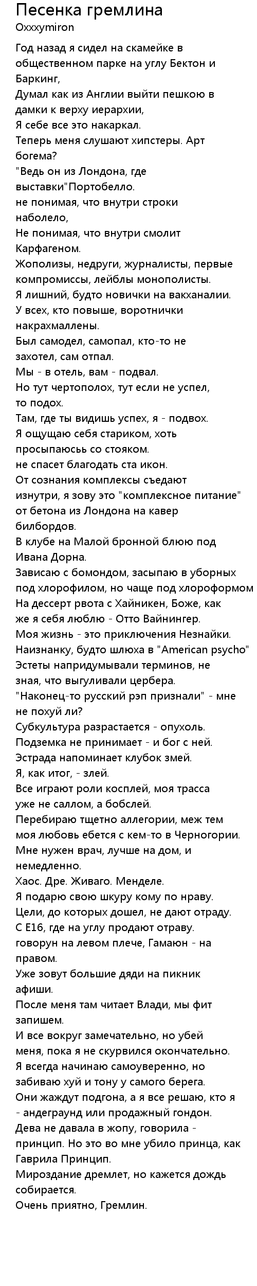 Песенка гремлина 歌词