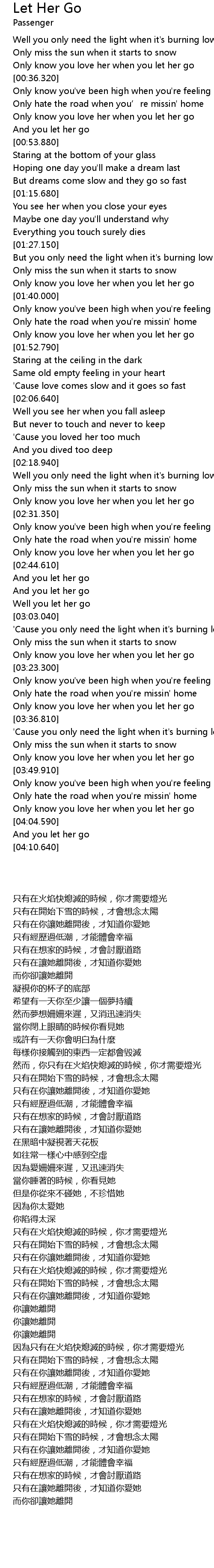 | [03:40.310] | ' Cause you only need the light when it' s burning low |