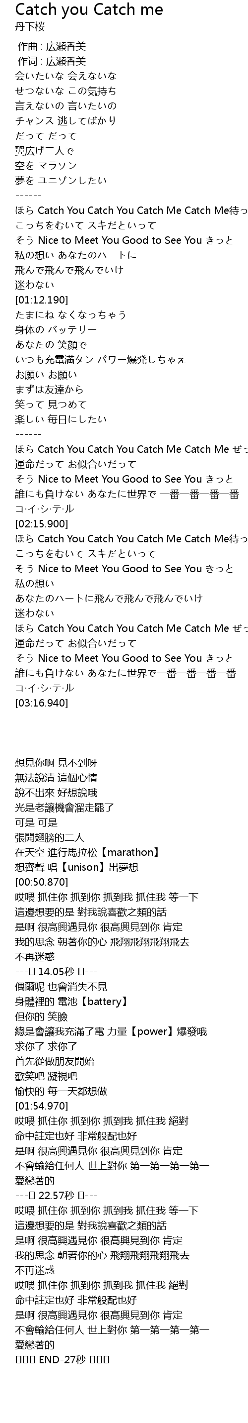 | [02:38.470] | Catch You Catch You Catch Me Catch Me dài |