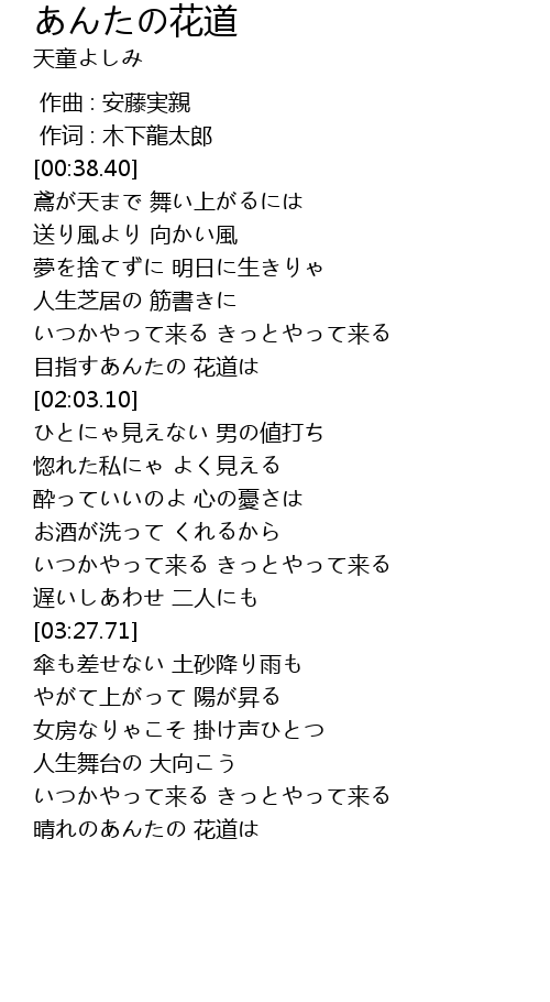 | [00:38.47] | 鳶が天まで 舞い上がるには |