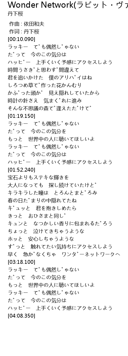 | [03:03.430] | 早く 急がなくちゃ ワンダーネットワークへ |