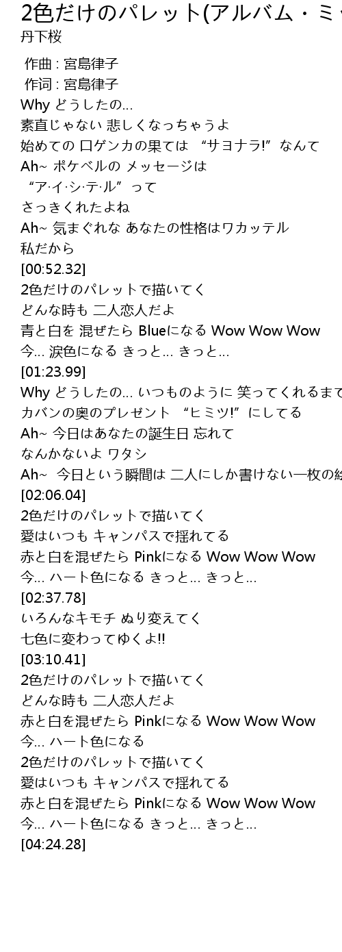 | [04:01.46] | 赤と白を混ぜたら Pinkになる Wow Wow Wow |