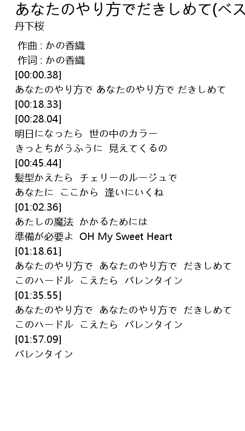 | [00:00.39] | あなたのやり方で あなたのやり方で だきしめて |