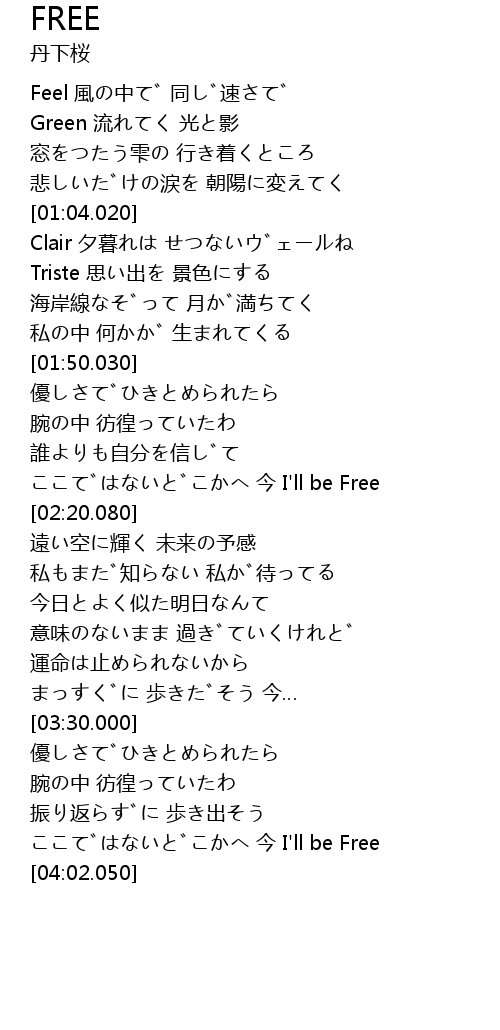 | [03:47.770] | ここではないどこかへ 今 I'll be Free |