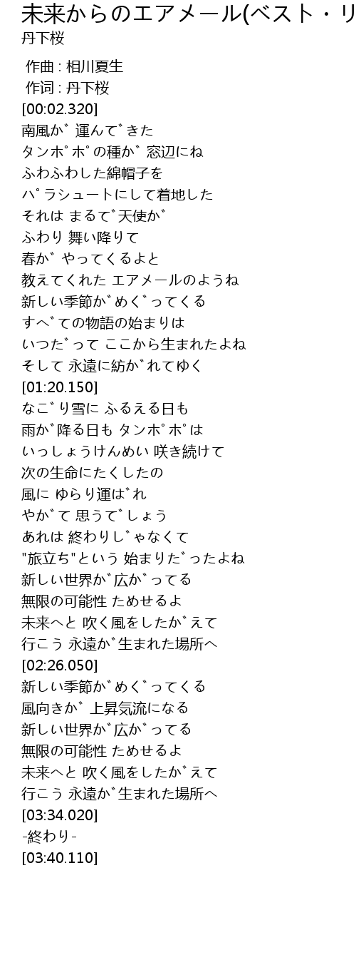 | [00:52.740] | 教えてくれた エアメールのようね |