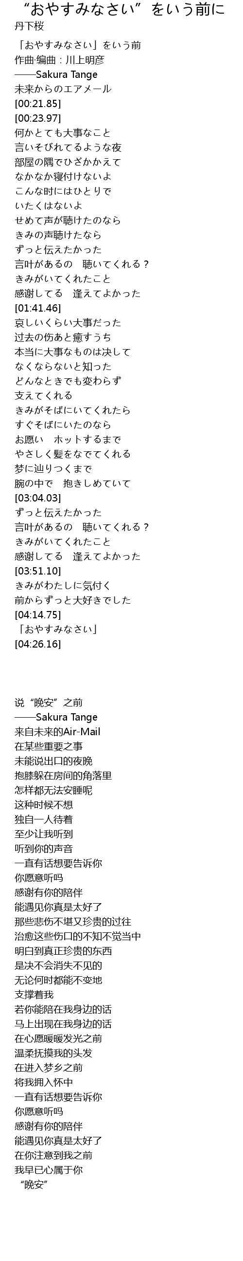 | [04:23.29] | 「おやすみなさい」 |