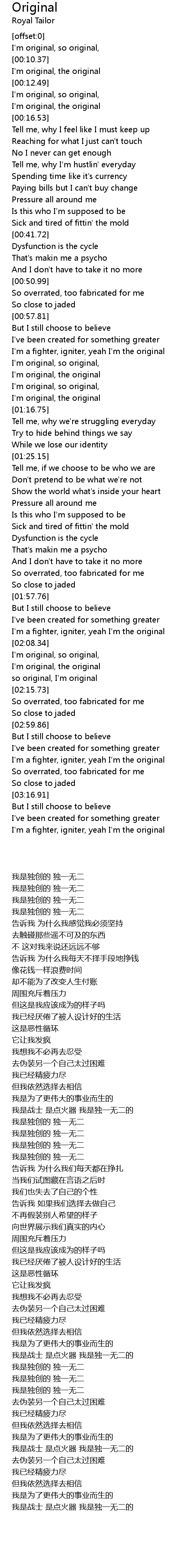 I'm original, so original, |