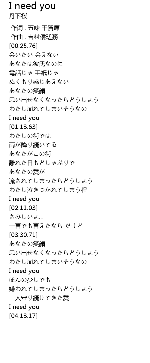 | [02:07.17] | I need you |