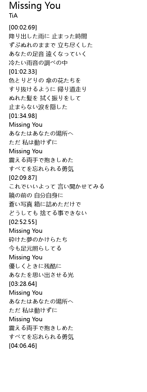 | [00:41.11] | ずぶぬれのままで 立ち尽くした |