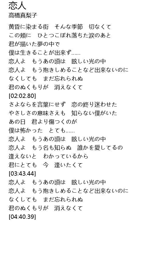 | [04:10.19] | 恋人よ もう抱きしめることなど出来ないのに |