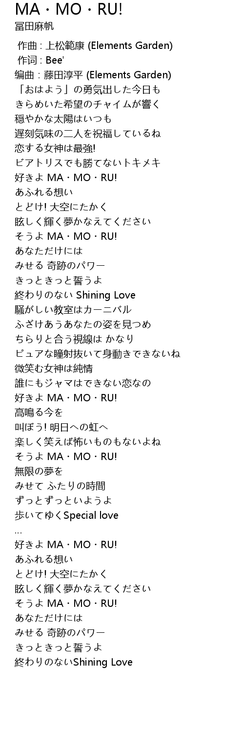 | [00:54.74] | 好きよ MA・MO・RU! |