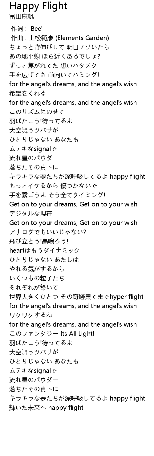 | [03:53.783] | キラキラな夢たちが深呼吸してるよ happy flight |