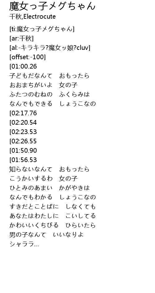 | [00:45.27][01:50.90][02:32.63] | 魔女っ子メグは 魔女っ子メグは |