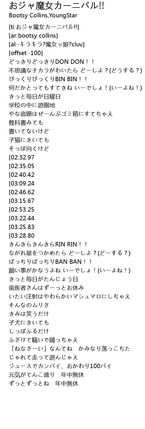 | [01:05.16][03:09.24] | はしゃいで騒いで歌っちゃえ |